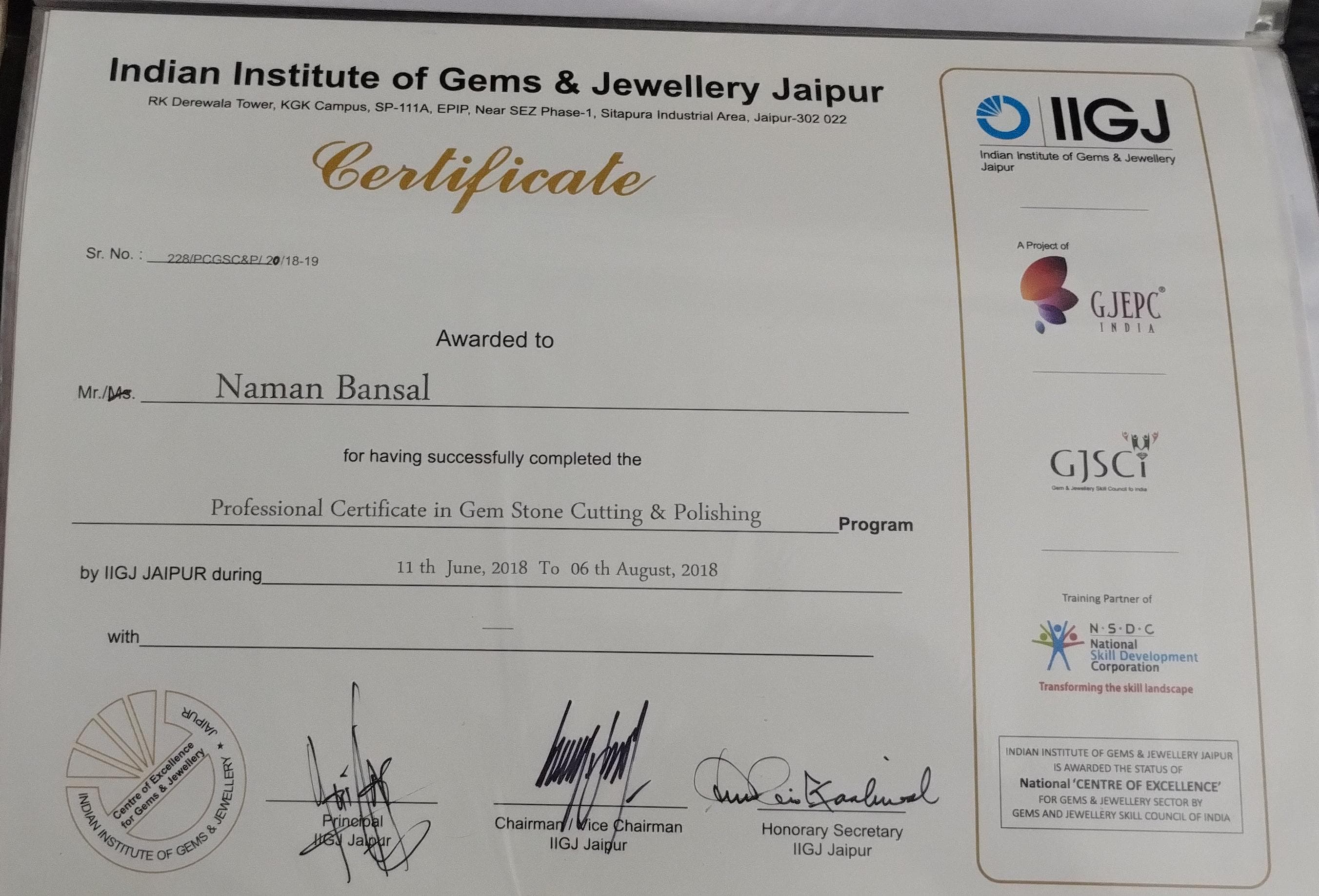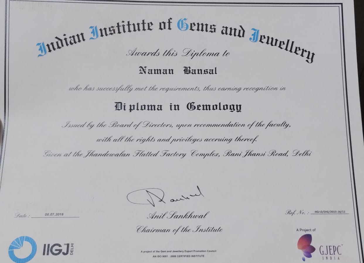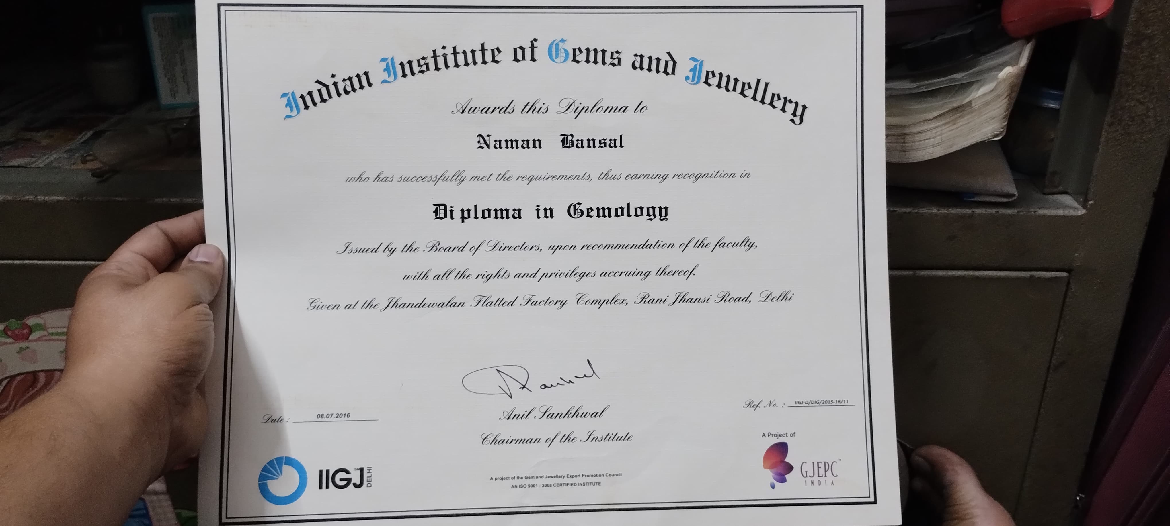 Today the Certification of Gemstone Become an absolute necessity in the course of day to day business because there are many synthetic and treated Gem materials emerging in the Market .